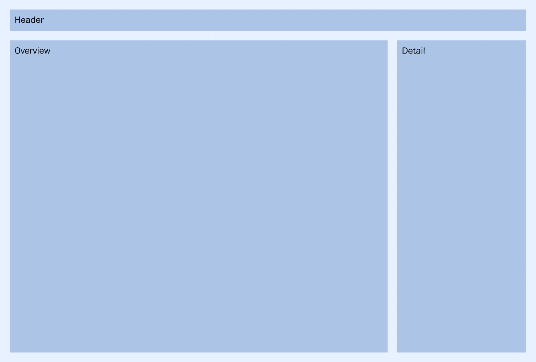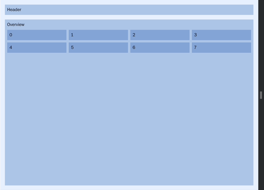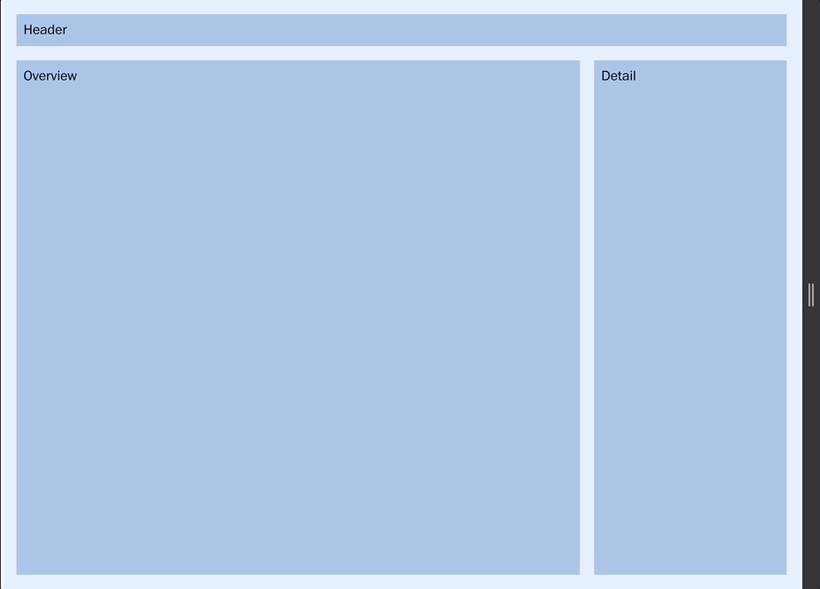 The OverviewDetail has its display property set to flex to layout its child elements in a row. The Overview element also uses flex: 1 to expand and fill the main portion of OverviewDetail's flex row. Finally, the Detail element starts in its large screens layout, using flex's two value syntax to set its width to 25%.