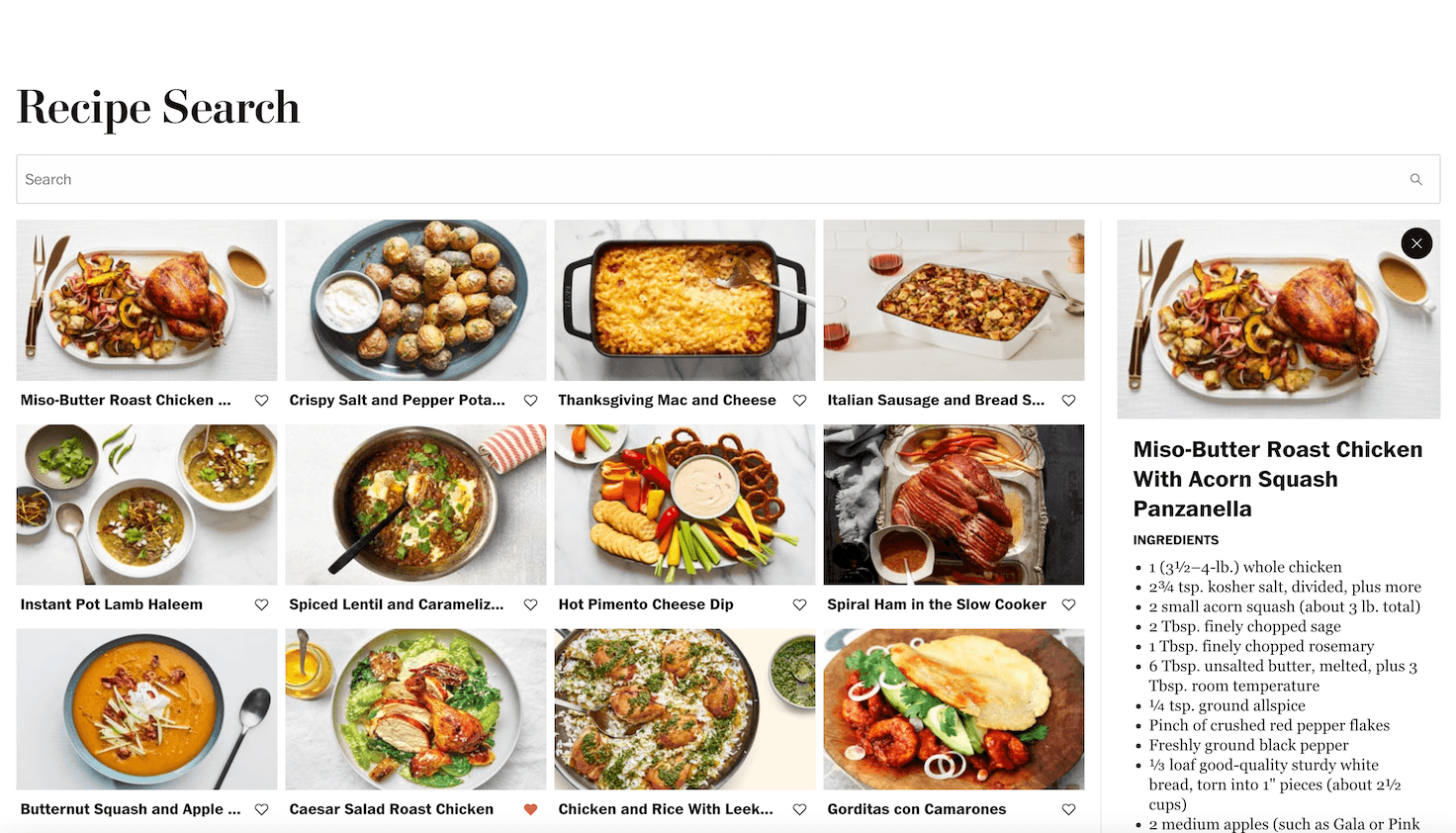 We are going to develop the UI for a landing page for a new product, called "Recipe Search". It will be a search page for recipes. The user will be able to search for recipes by name, ingredients, or cooking method. The results will be displayed in a list. The user will be able to click on a recipe to see the full recipe. The user will be able to click on the "Add to Favorites" button to add the recipe to their favorites.